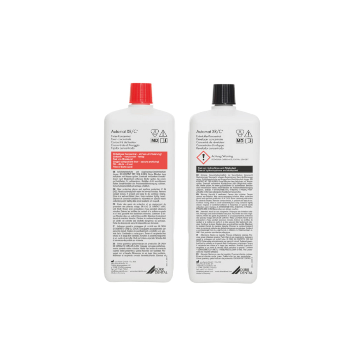 4 Garrafas de 1.5 Litros cada. Rendimento: 2 soluções de 5 Litros de revelador e 2 de 5 Litros de fixador.