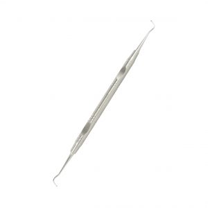 As extremidades finas penetram no fio entrelaçado e as suas ligeiras serrilhas evitam que o instrumento deslize e agrida o tecido gengival; Os instrumentos serrilhados são recomendados para posicionar os fios no sentido axial, já as espátulas deslizantes sem serrilha são mais indicadas em situações que se trabalha com movimento deslizante horizontal; Ligeiramente serrilhado, arestas não cortantes; Espátula pequena com ângulo de 45º em relação ao cabo, à direita e esquerda respectivamente, para permitir um posicionamento circular na preparação sem ter de girar o instrumento para usar a outra extremidade.