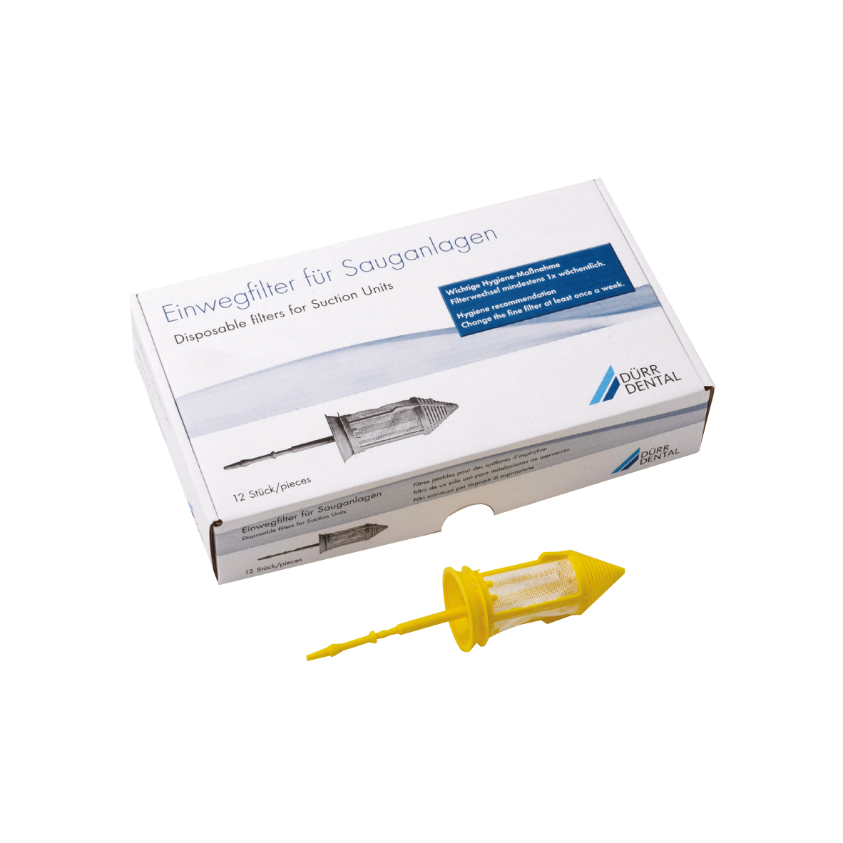 Filtro amarelo descartável para usar como suporte seletivo ou separador automático dos sistemas de aspiração. Trocar pelo menos uma vez por semana.