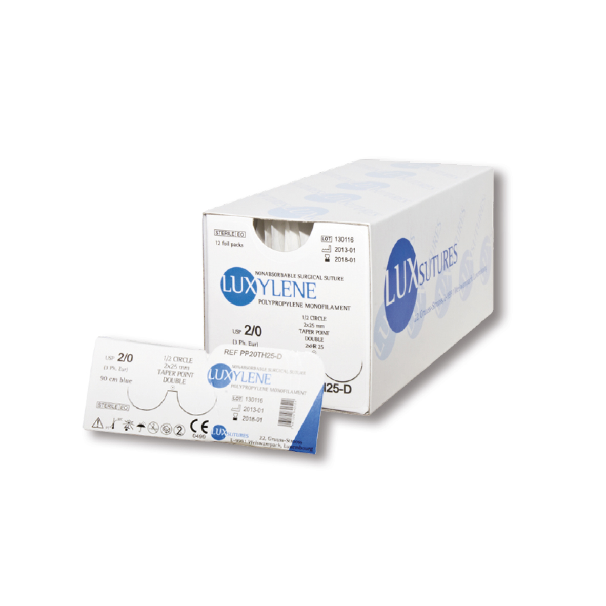 Sutura cirúrgica não absorvível. Monofilamento. Azul. As suturas Luxylene são indicadas para uso no fechamento e / ou ligadura de tecidos moles em geral